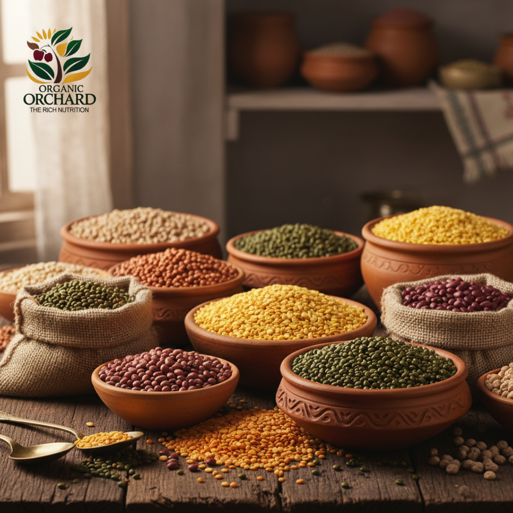 At Organic Orchard, our pulses are grown using traditional farming methods to ensure that every grain retains its natural taste, rich flavor, and nutritional goodness. We never add preservatives or artificial colors, keeping the pulses pure and wholesome. Consuming these naturally cultivated pulses not only enhances the taste of your meals but also promotes better health and well-being, offering you the authentic essence of Indian cooking in every bite.