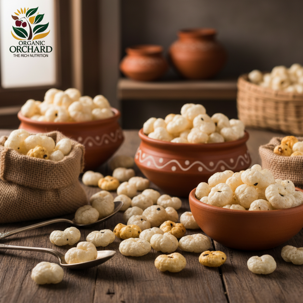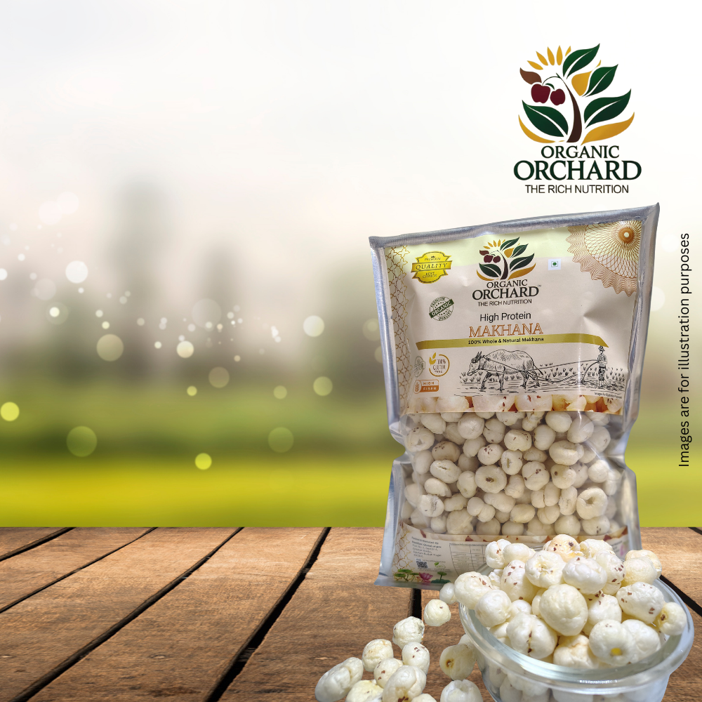 At Organic Orchard, our Makhana is cultivated using traditional farming methods to preserve its natural crunch, authentic flavor, and nutritional goodness. We never use preservatives or artificial colors, ensuring that every bite is pure, wholesome, and healthy. Consuming these naturally grown Makhana supports good health, digestion, and energy, offering you the true essence of this ancient superfood in its most authentic form.